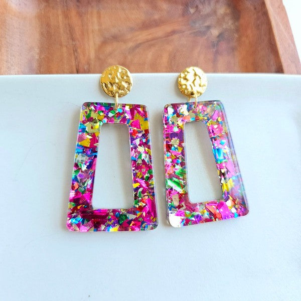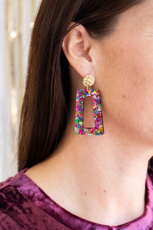 Make a bold statement and express your unique style with our sparkle confetti statement earrings. Whether you're looking to make a lasting impression at a special event or simply want to add a touch of glamour to your daily life, these Avery earrings are your perfect accessory.