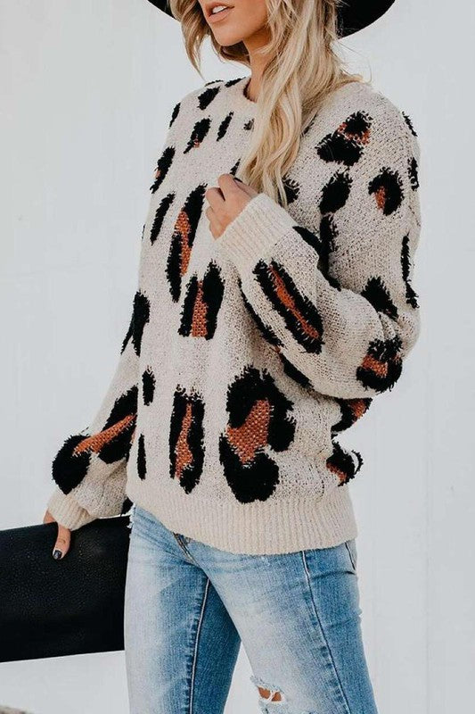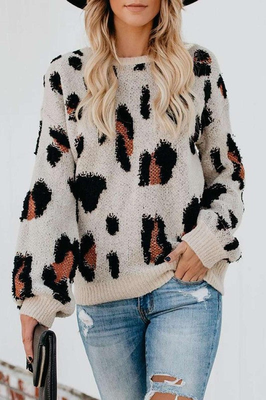 Ladies Casual Sweater Long Sleeve Leopard Print Knitting Sweaters for Women Round Neck Pullover Sweater Clothes Sale