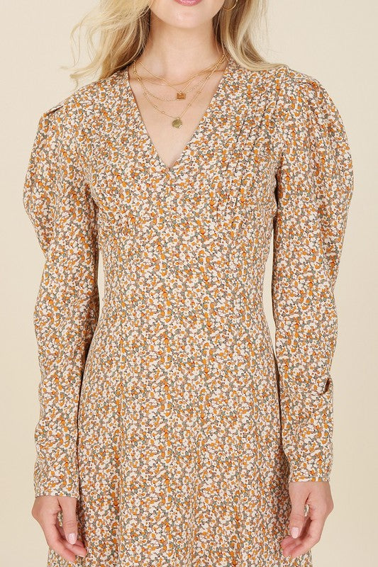 - Fit and Flare floral maxi dress, puff at shoulder,