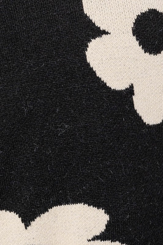 This sweater features a daisy pattern that adds a fresh and playful vibe to the classic crop sweater style. It offers both comfort and style with its soft knit fabric and eye-catching design. The crop length adds a modern twist, making it a versatile piece to pair with high-waisted jeans or skirts.