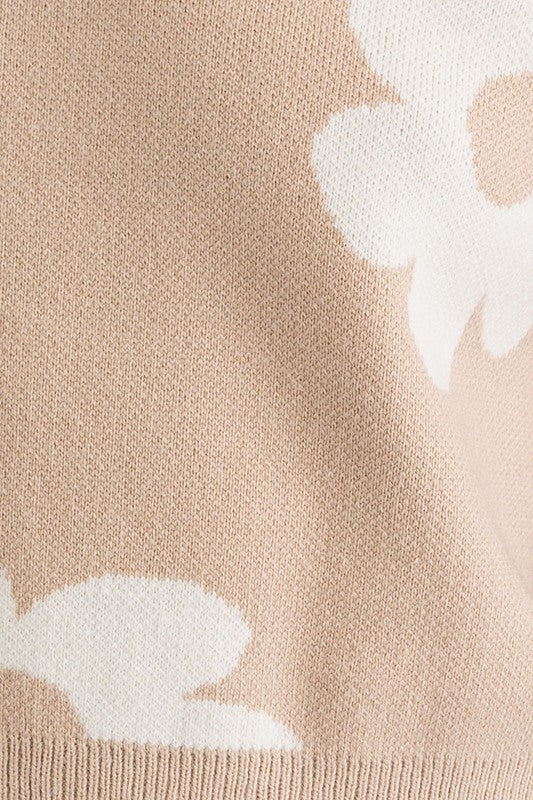 Long Sleeve Crop Sweater with Daisy Pattern