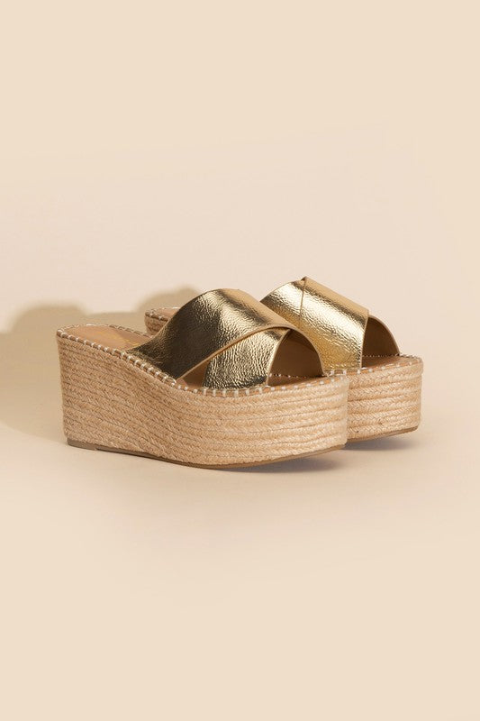 Step into summer elegance with our Synthetic Raffia Wedge Platform Slides. These slides feature a contemporary twist with their synthetic raffia design, combining style and comfort effortlessly. With a comfortable wedge platform, these slides offer a versatile option for enhancing your warm-weather attire.